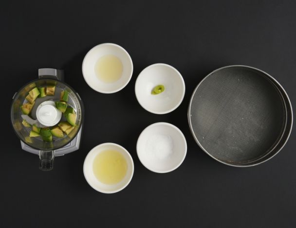 FacileMixer au blender 3 avocats, avec le jus de yuzu, le sel, le blanc d'œuf et le wasabi. Passer au tamis.