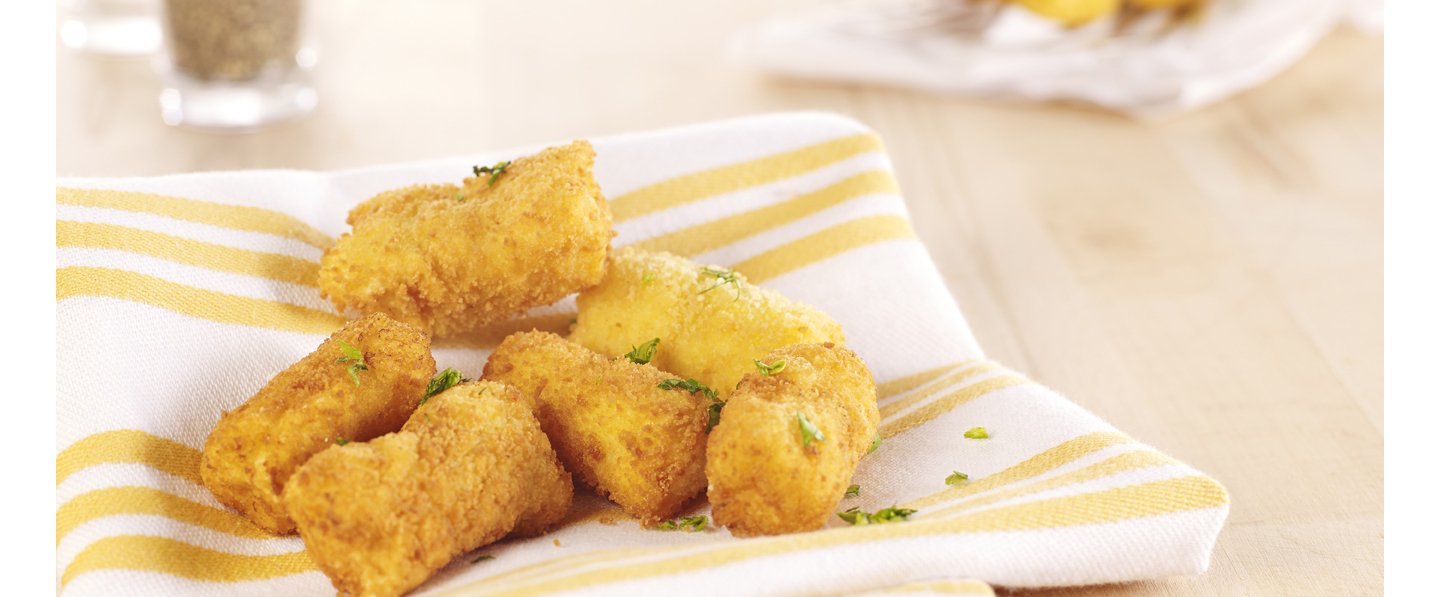 Dans une assiette, déposer la chapelure. Dans un bol, mélanger l'oeuf entier avec l'huile d'olive et une pincée de sel. Saupoudrer le plan de travail de farine. Former de longs boudins avec la chair de pommes de terre puis les découper en morceaux de 4 à 5 cm. Tremper les morceaux dans le mélange d'oeuf puis les rouler dans la chapelure. Ils doivent être bien enrobés de chapelure.