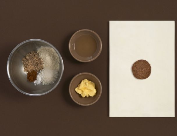 MoyenMélanger dans une calotte la farine, le beurre, le sucre semoule, la poudre de noix et la cannelle puis incorporer l’huile et le beurre pommade. Former à l’aide de la paume de main une demi-sphère puis cuire au four à 180 °C pendant 6 minutes.