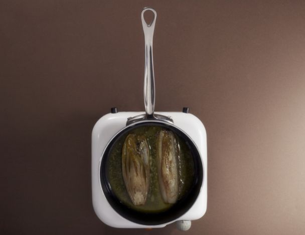 Couvrir et laisser cuire à petit feu en retournant régulièrement les endives, jusqu'à ce qu'elles soient dorées et tendres. Ajouter éventuellement un peu d'eau si la cuisson est trop rapide. Retirer les endives et laisser refroidir.