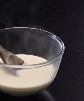 Dans une casserole, faire fondre le beurre sans coloration et ajouter la farine en une seule fois. Retirer du feu et remuer très vivement au fouet pour obtenir un mélange lisse.