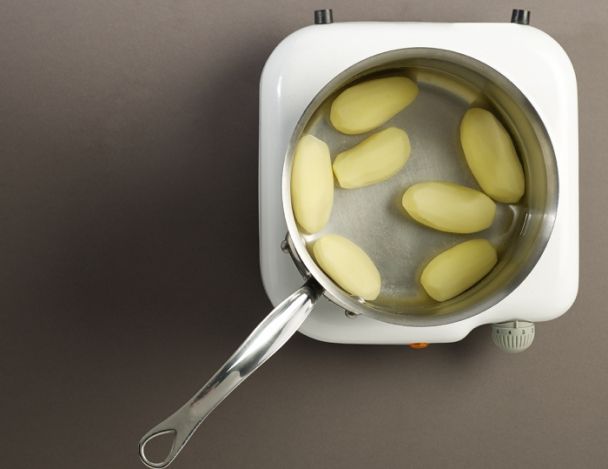Pendant la cuisson de la sauce cuit et du confit d'échalotes, mettre les pommes de terre à cuire à l’eau avec du sel. Vérifier bien la cuisson des pommes de terre elles doivent être cuites mais pas ingurgiter d’eau.