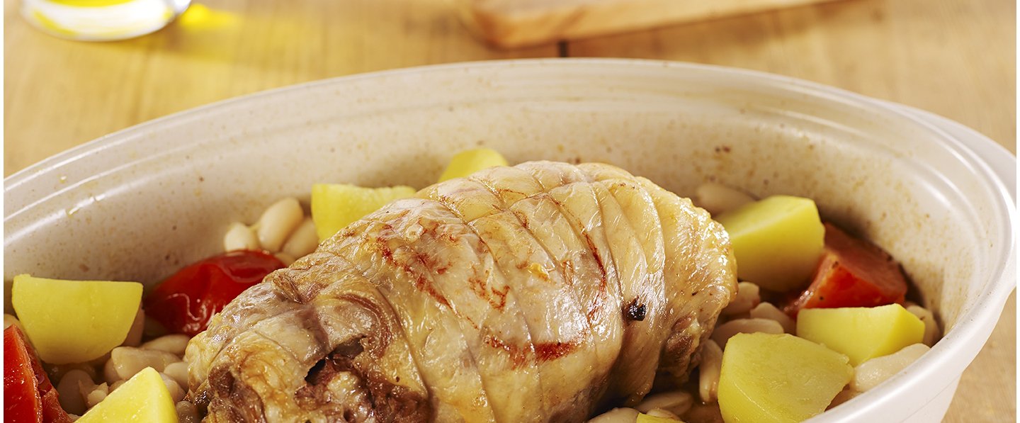 Servir l'épaule avec les haricots et les pommes de terre. Saupoudrer de persil haché.