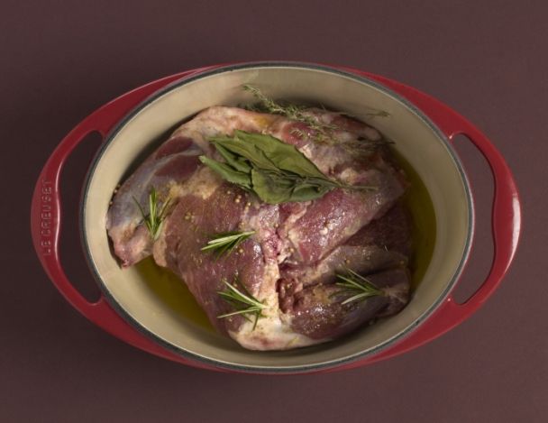 Mettre l'épaule d'agneau et sa marinade dans un plat allant au four. Cuire l'épaule au four à 150° pendant 4h avec un bouquet garni et sa marinade.
