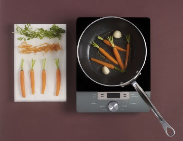 Préparer les carottes fanes. Les cuire à l'étuvée doucement avec de l'ail et du thym.
