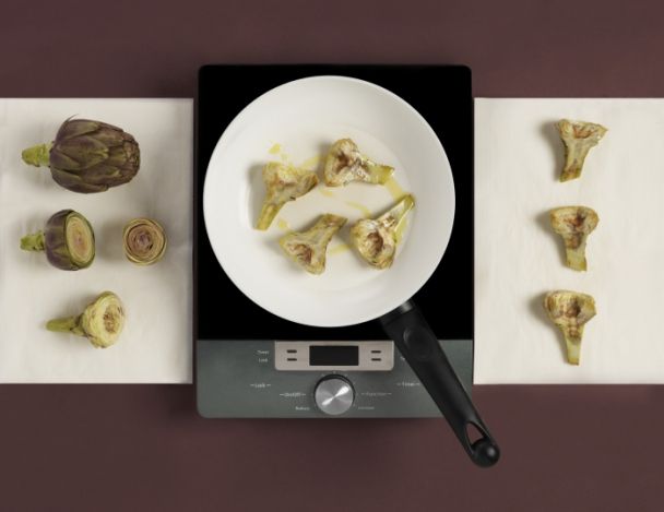 Préparer les artichauts. Et les cuire sautés à la poêle avec un peu d'huile d'olive