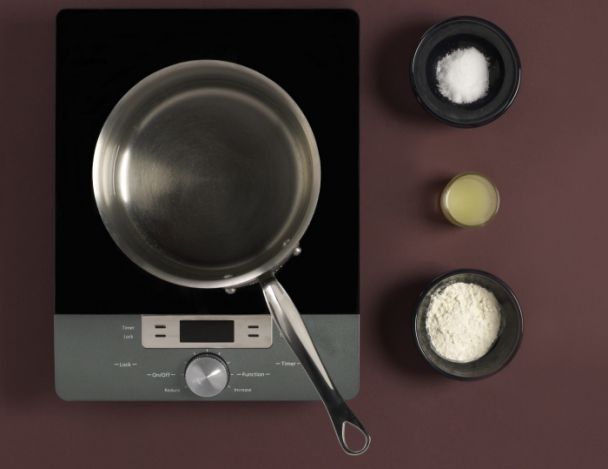 Mélanger de l'eau, de la farine, du sel et du jus de citron.