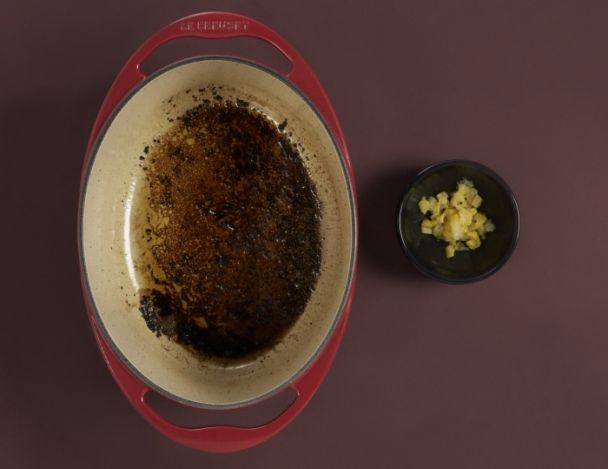 Récupérer les graisses et le jus de cuisson d'agneau pour perler le jus.