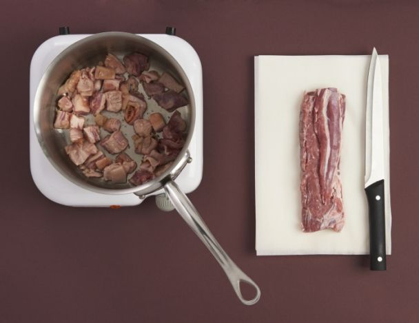 MoyenParer les filets d'agneau : ôter les parties grasses et nerveuses (parures) des filets d'agneau, les conserver pour la confection du jus.