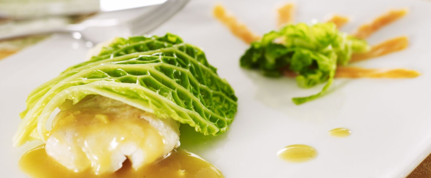 Découvrez cette délicieuse recette de filet de cabillaud, chou vert, beurre gingembre proposée par le chef Olivier Bellin. Succès garanti pour cette recette de poisson teintée d'exotisme !