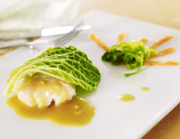 Cette délicieuse recette de filet de cabillaud, chou vert, beurre gingembre est une composition du chef Olivier Bellin. C'est un succès garanti pour cette recette de poisson teintée d'exotisme !