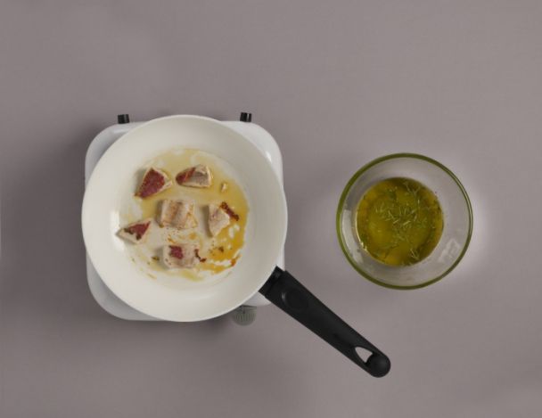 DifficilePréparer la marinade avec l'huile d’olive, jus de citron, sel et romarin. Habiller, lever et désarêter les rougets. Tailler les filets en 3. Saler et colorer les filets côté peau, retourner et laisser cuire encore 2 mn. Refroidir et ajouter la marinade.