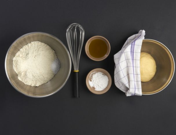 Laisser reposer la pâte une heure sous un torchon dans un récipient, au four Thermostat 1 soit 30/35°C.