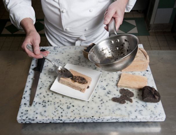A la sortie du four, retirer le foie gras de la cocotte ainsi que la graisse résultant de la cuisson. Réserver le foie gras au chaud.