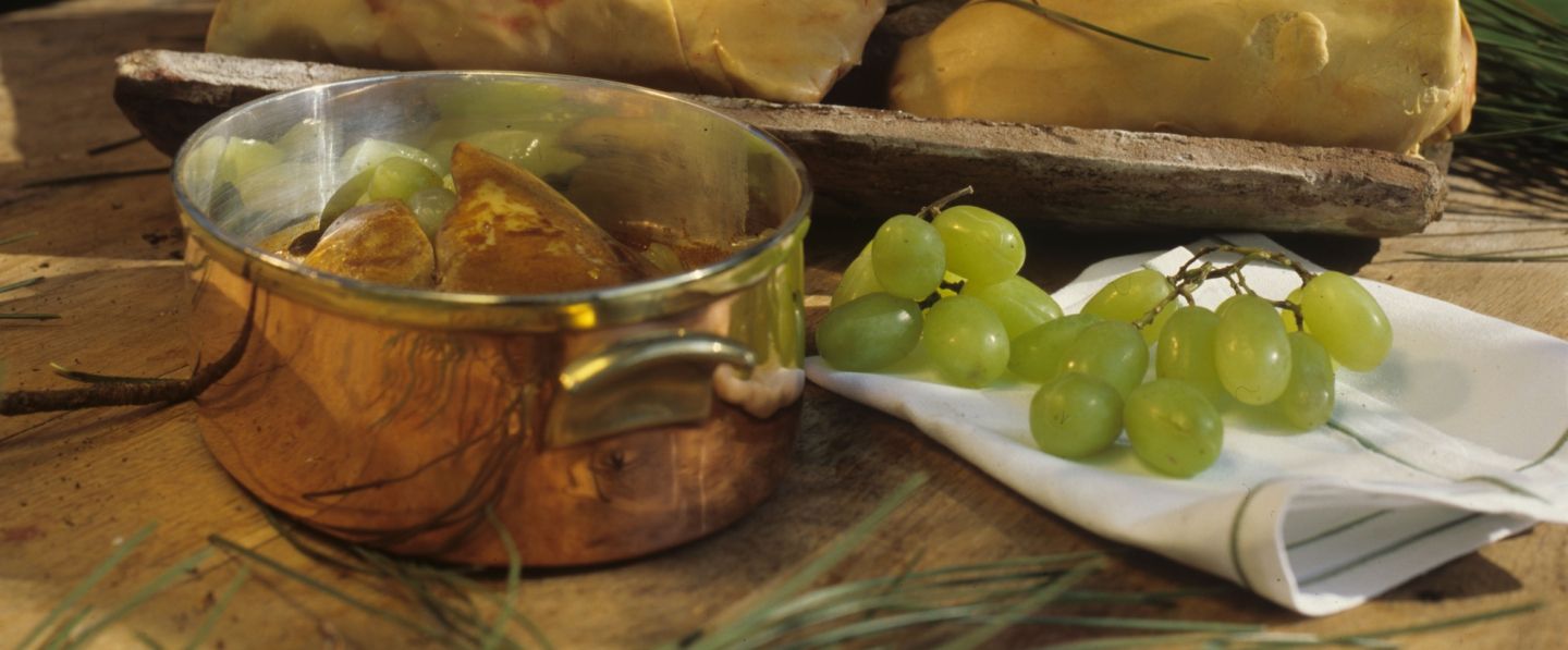 Laisser réduire le tout de moitié, puis passer au chinois fin. Verser la sauce ainsi obtenue dans une casserole et laisser chauffer doucement pendant 3 ou 4 minutes. Lorsque la sauce est bien chaude, y plonger les grains de raisins pour les réchauffer.