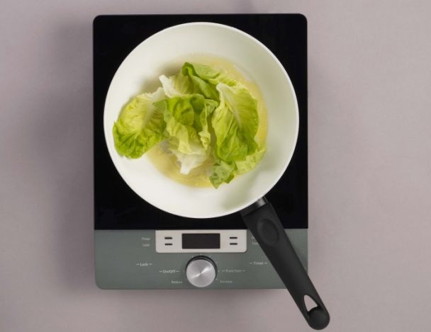 Au moment de servir, faire rapidement sauter les feuilles de laitue 2 minutes dans une sauteuse avec 15g de beurre. Récupérer le jus de cuisson et le faire réduire presqu'à sec. Vérifier l'assaisonnement en sel et en poivre, ajouter le reste de beurre demi-sel en remuant bien pour monter la sauce.