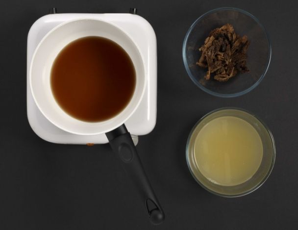 Les mettre à tremper dans de l’eau tiède, puis les partager en deux dans la longueur et les rincer abondamment. Faire réduire le madère à sec, ajouter les morilles, le fond blanc et cuire 40 minutes à découvert.