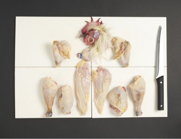 MoyenDécouper la volaille en huit morceaux et réserver la graisse du croupion.