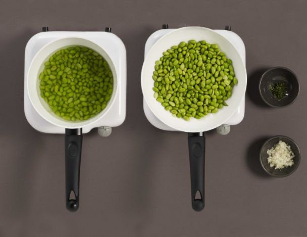 Ecosser les févettes et les cuire à l’eau bouillante salée et puis les refroidir dans l’eau glacée. Ciseler une échalote. Ensuite, faire revenir sans coloration au beurre doux les févettes et rajouter de la sarriette ciselée et l’échalote ciselée fine. Bien assaisonner.