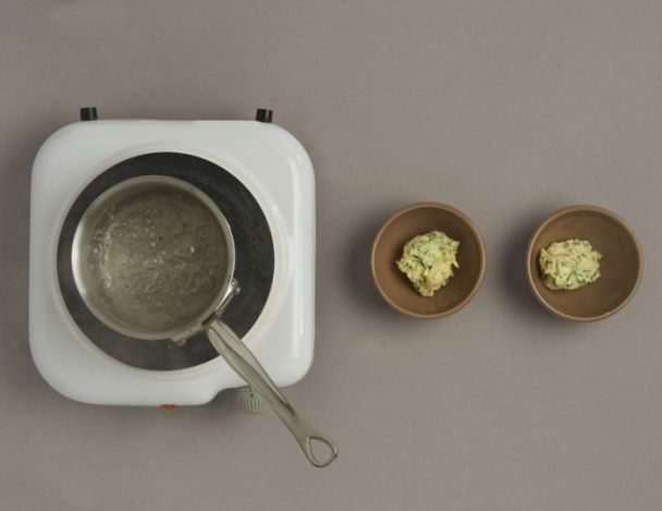 Verser 4 cuillères à soupe d'eau dans une casserole et porter à ébullition.
