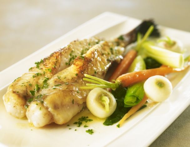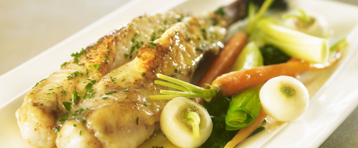 Ce poisson aux arômes rafraîchissantes d’herbes aromatiques demande un vin vif et minéral comme un Chardonnay du Bugey ou un Macon villages.