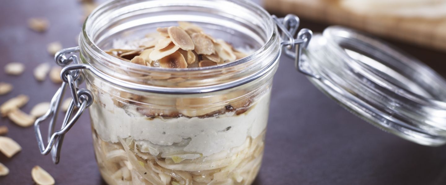 Parsemer le gratin d'amandes effilées puis enfourner les bocaux pour 15 minutes de cuisson.
