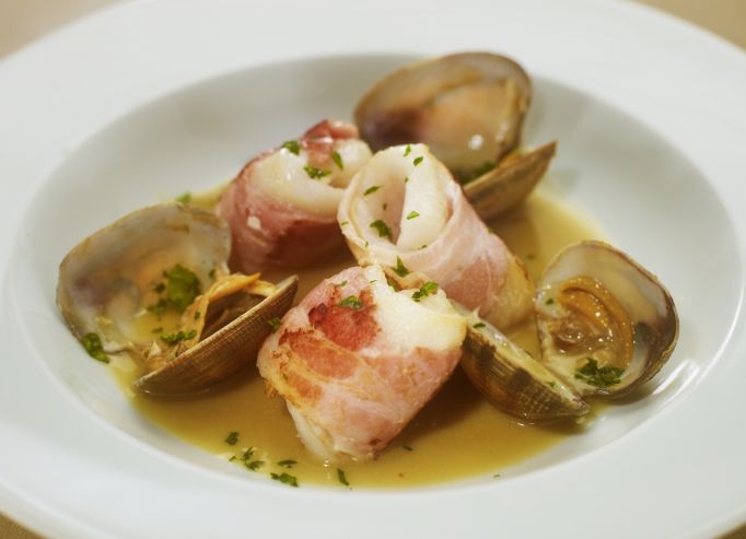 Ciseler l'échalote. Faire fondre une noix de beurre dans une grande casserole. Ajouter l'échalote et la faire blondir, incoporer ensuite les moules et le vin blanc. Couvrir et laisser cuire jusqu'à ce que toutes les moules soient bien ouvertes. Égoutter les moules, tout enconservant le jus de cuisson. Récupérer les moules et jeter les coquilles. Filtrer le jus de cuisson. Réserver.