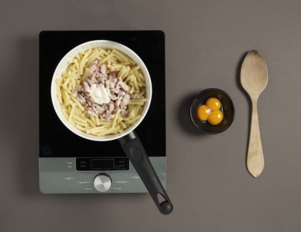 Cuire les macaronis à l'anglaise. Rafraîchir. Incorporer le mélange crème+lardons. Ajouter les jaunes d'œufs et bien mélanger.