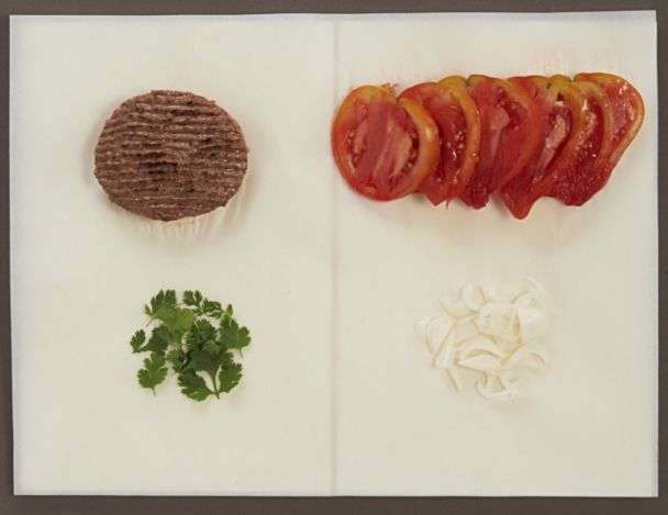 Poêler les hamburgers et ajouter quelques feuilles de coriandre.