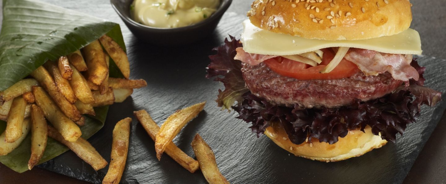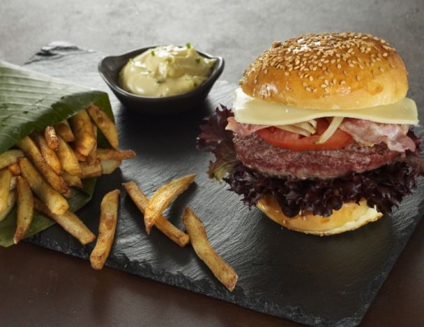 Servir les hamburgers avec les frites et la mayonnaise Teriyaki.