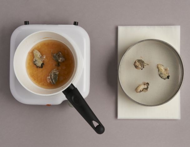 Plonger les huîtres 30 secondes dans cette réduction, les retirer et les déposer sur une grille.