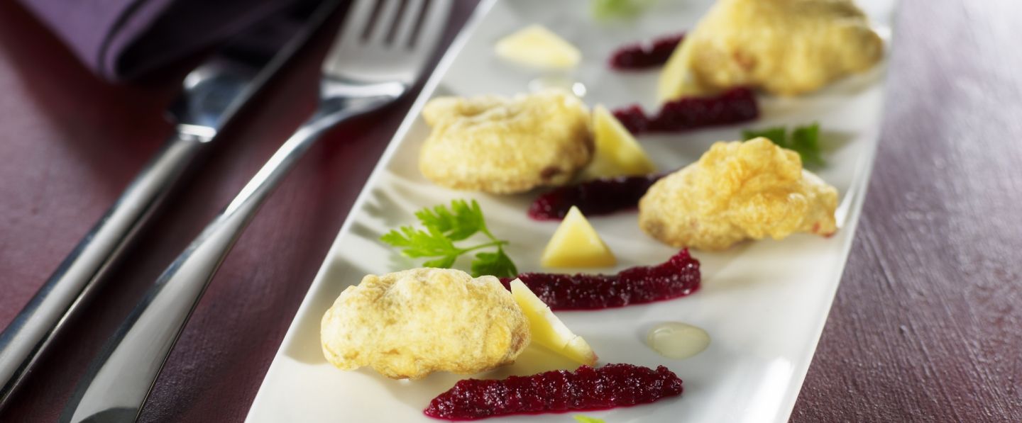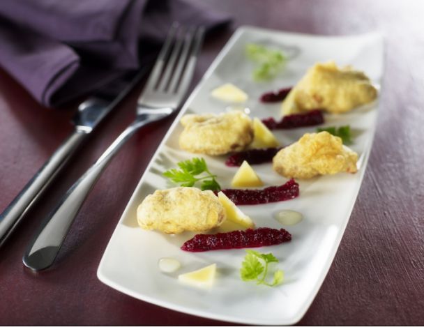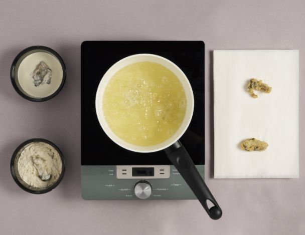 La cuisson en tempura consiste à frire les aliments : ici ce sont les huîtres, que l'on dressera avec une émulsion de betterave, et du comté. Audacieux ? À votre tour de goûter !