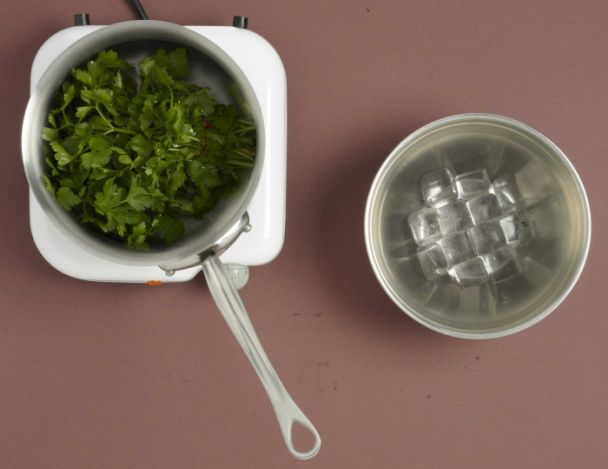 Puis, le plonger immédiatement dans de l’eau glacée pour le refroidir et fixer la chlorophylle.