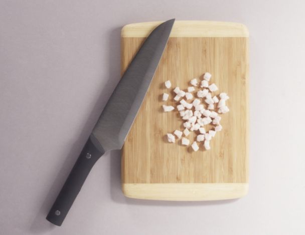 Tailler le lard colonnata en petits cubes d'environ 2 mm de côté.