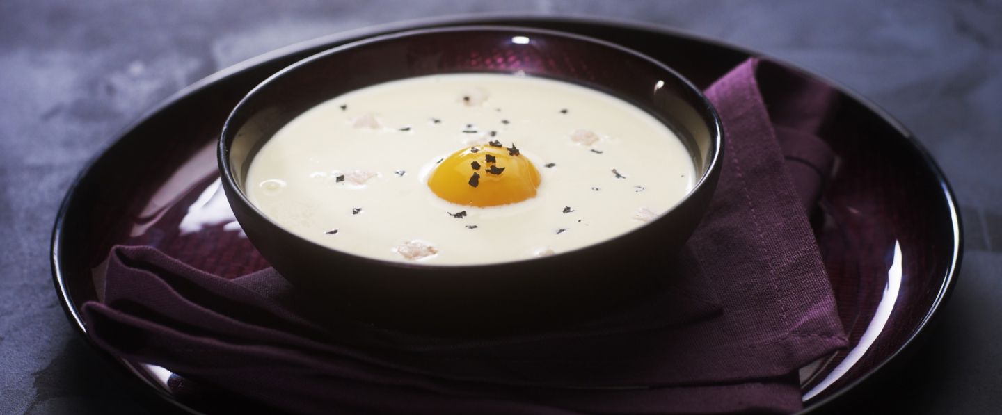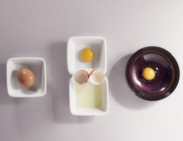 Clarifier les œufs, c’est-à-dire, séparer le blanc du jaune et poser les jaunes au fond de chaque assiette de dressage (1 jaune par personne).