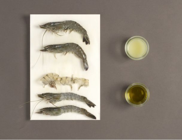 MoyenDécortiquer les crevettes en laissant la tête attenante. Presser le citron.