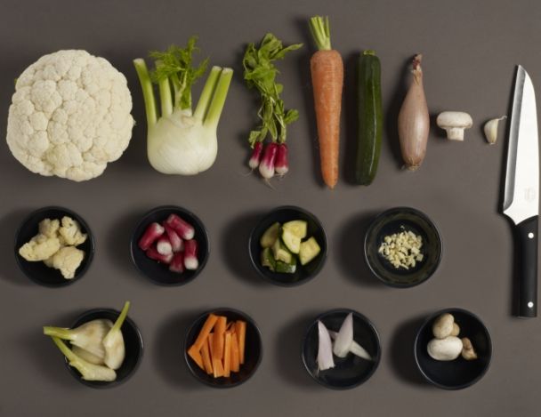 Eplucher et laver les légumes. Les couper en morceaux réguliers.