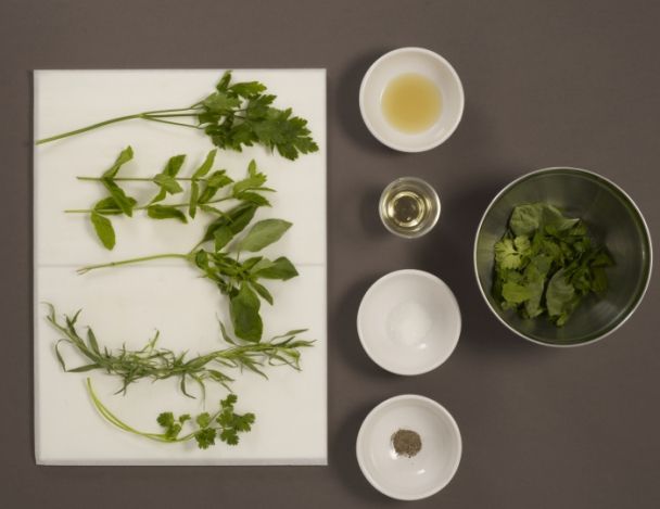 Nettoyer et effeuiller toutes les herbes. Mélanger comme une salade puis assaisonner le tout avec le jus de citron, l'huile de pépins de raisins, sel et poivre.