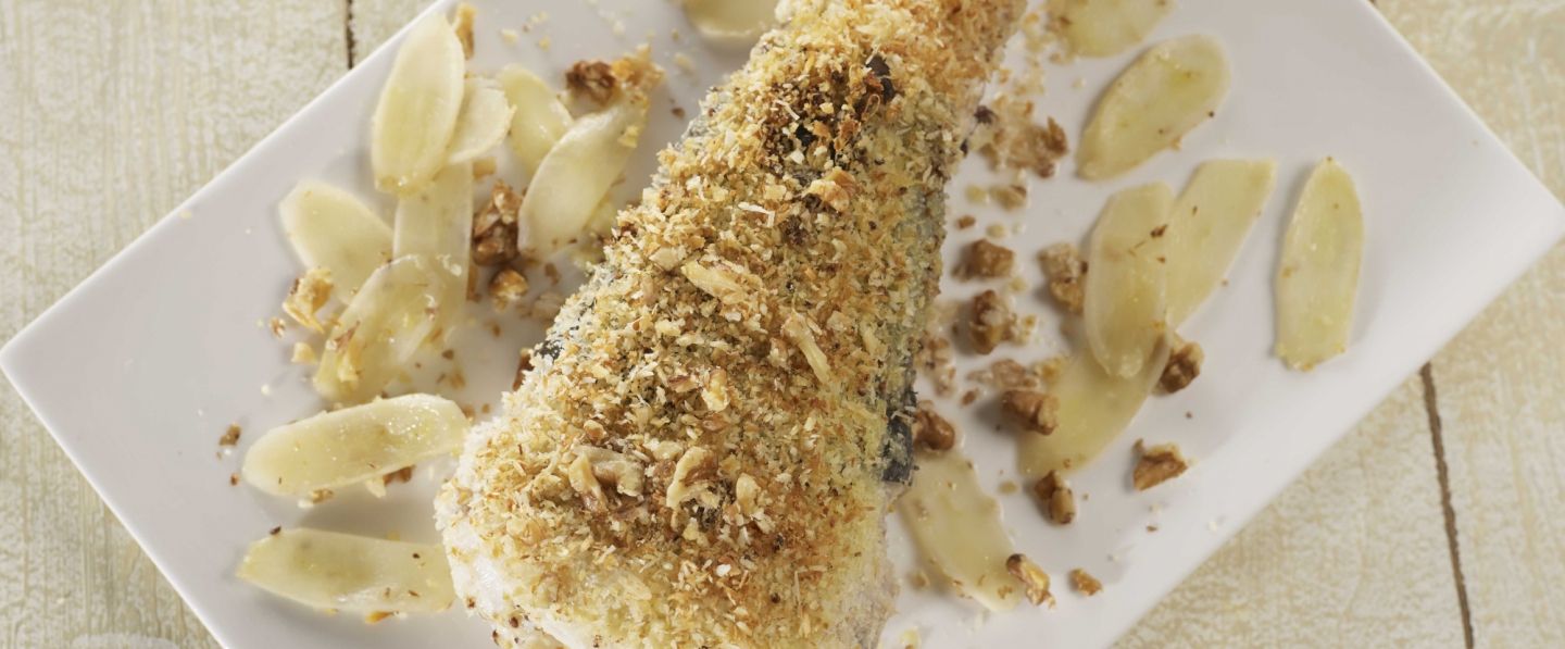 Pour éblouir vos invités, testez la recette du chef de lotte panée à la noix de coco, aux salsifis et aux noix ! Ce poisson à l'apparence peu reluisante, est un poisson très noble, apprécié pour sa chair ferme et son goût délicat. Cette recette aux notes exotiques est un délice !