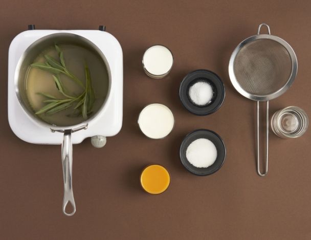 Faire bouillir ½ l. de fumet avec 3 branches de sauge, et réserver les 2 autres branches dans un bain-marie. Ajouter le lait, la crème et le jus d’orange, 2 cuillères à soupe de sucre et 1 cuillère à soupe de sel. Une fois à ébullition, passer la sauce au chinois fin dans le bain-marie. Rectifier l’assaisonnement en apportant un peu d’acidité avec le vinaigre.