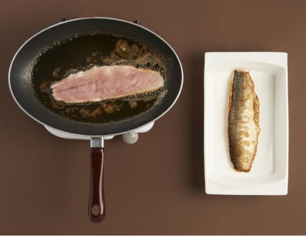 Saler les poissons des deux côtés, les mettre à rôtir côté peau dans une poêle anti-adhésive. A mi-cuisson, les retirer et finir la cuisson sous la salamandre afin d’avoir un filet moelleux à l’intérieur et croustillant au-dessus.