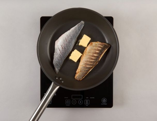 Colorer le poisson à la poêle et finir la cuisson au four à 145°C