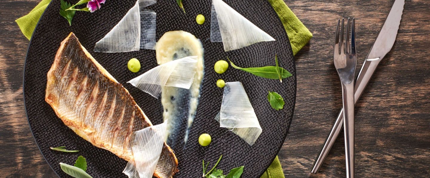 Au menu ce jour, un poisson de choix est à l'honneur : Le bar, roi des poissons, ou loup de méditerranée, sera servi avec des poireaux al dente, et un espuma de pomme de terre