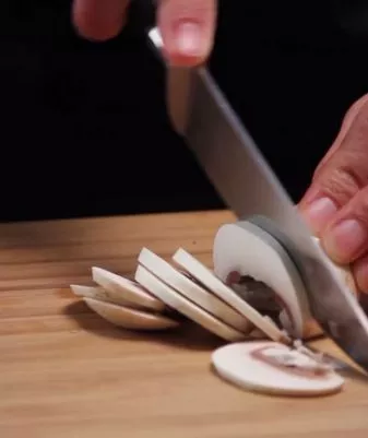 Couper les champignons en lamelles. Faire revenir dans de l'huile d'olive pendant 5 minutes avec du sel, du poivre et 1 gousse d'ail hachée.