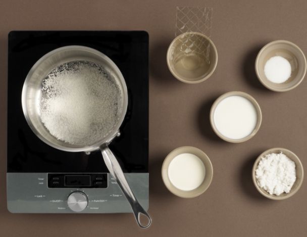 DifficileFaire chauffer l'ensemble des ingrédients du blanc-manger coco: lait, crème, noix de coco en poudre, sucre, pulpe de noix de coco.