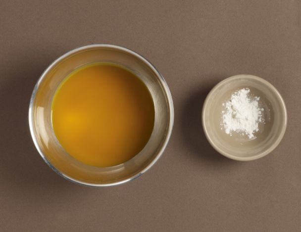 Verser la pulpe de mangue dans un cul de poule, ajouter le xanthane. Laisser prendre au frais.