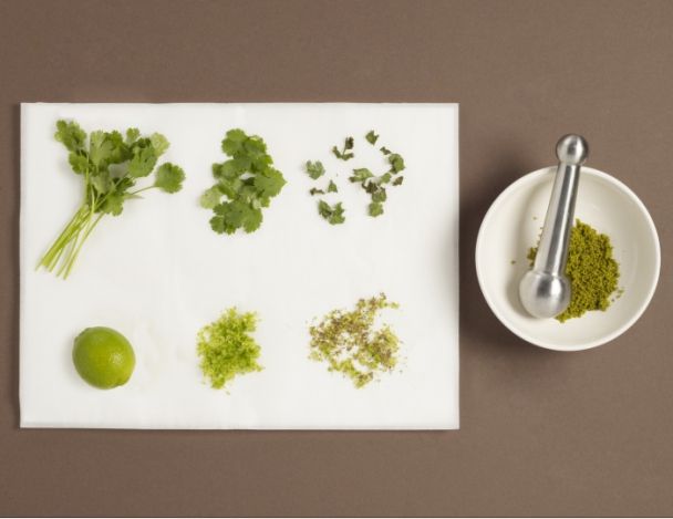 Zester les citrons à la râpe. Effeuiller la coriandre. Faire sécher sur une plaque séparément à l'air libre (ou au four pour accélérer le processus pour le citron à 80°C).