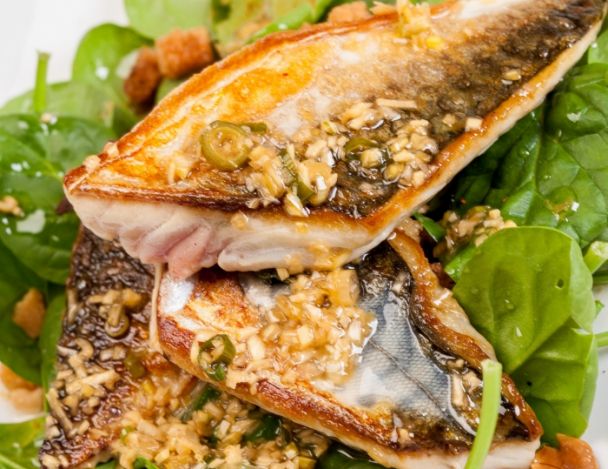 Disposer les filets de maquereaux sur les pousses d’épinards.