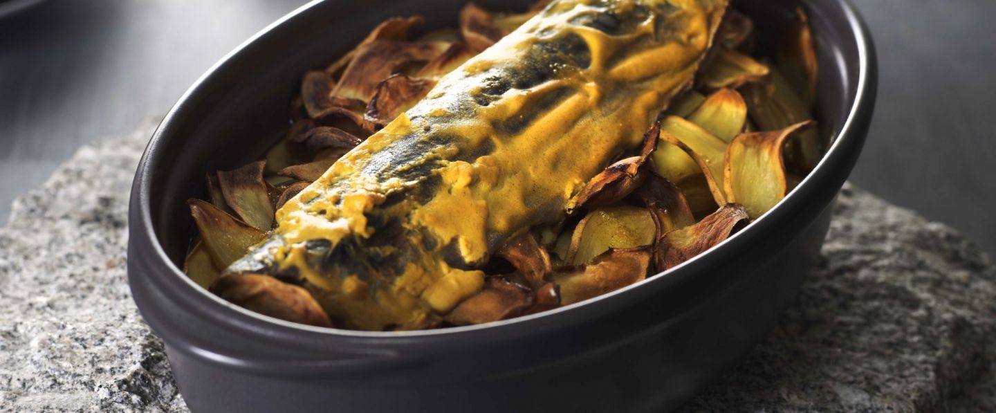 Marmite de maquereaux au cidre et pommes rattes