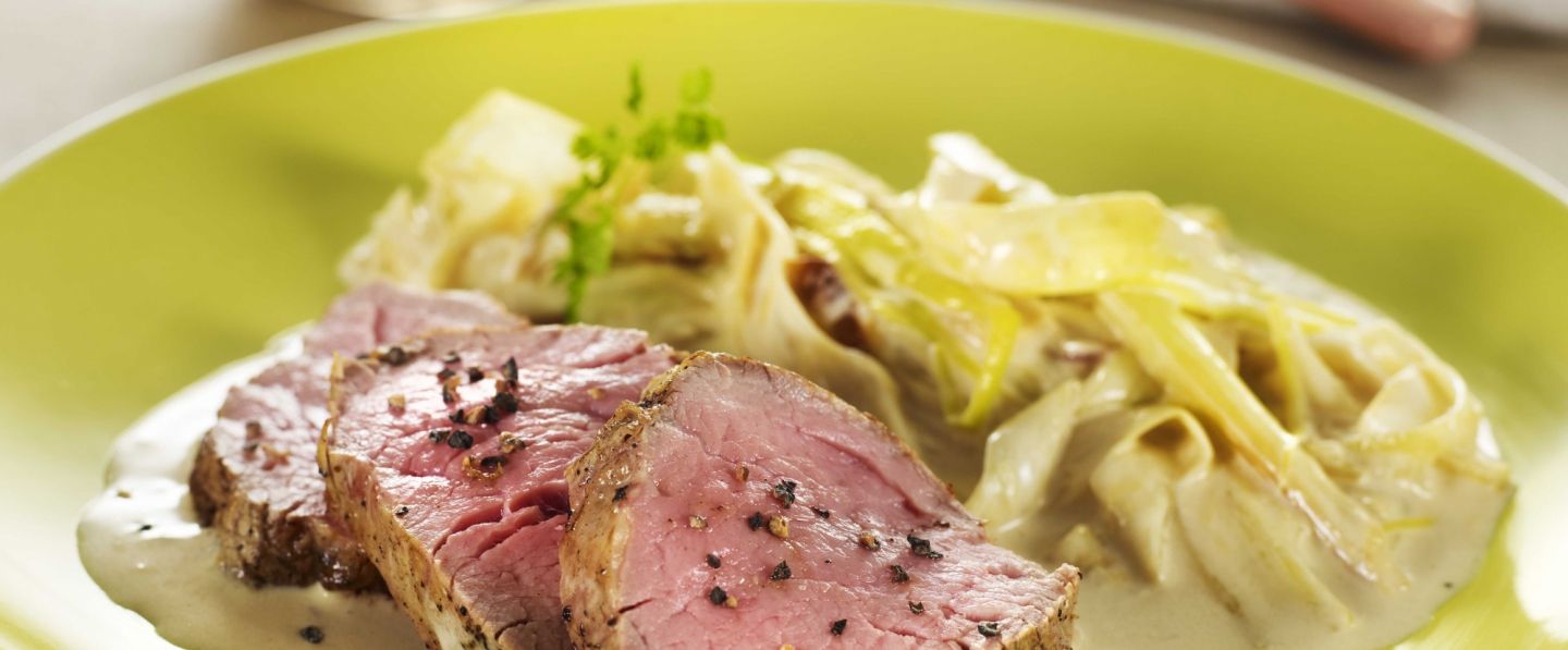 Dresser le filet coupé en médaillons sur la fondue de poireaux